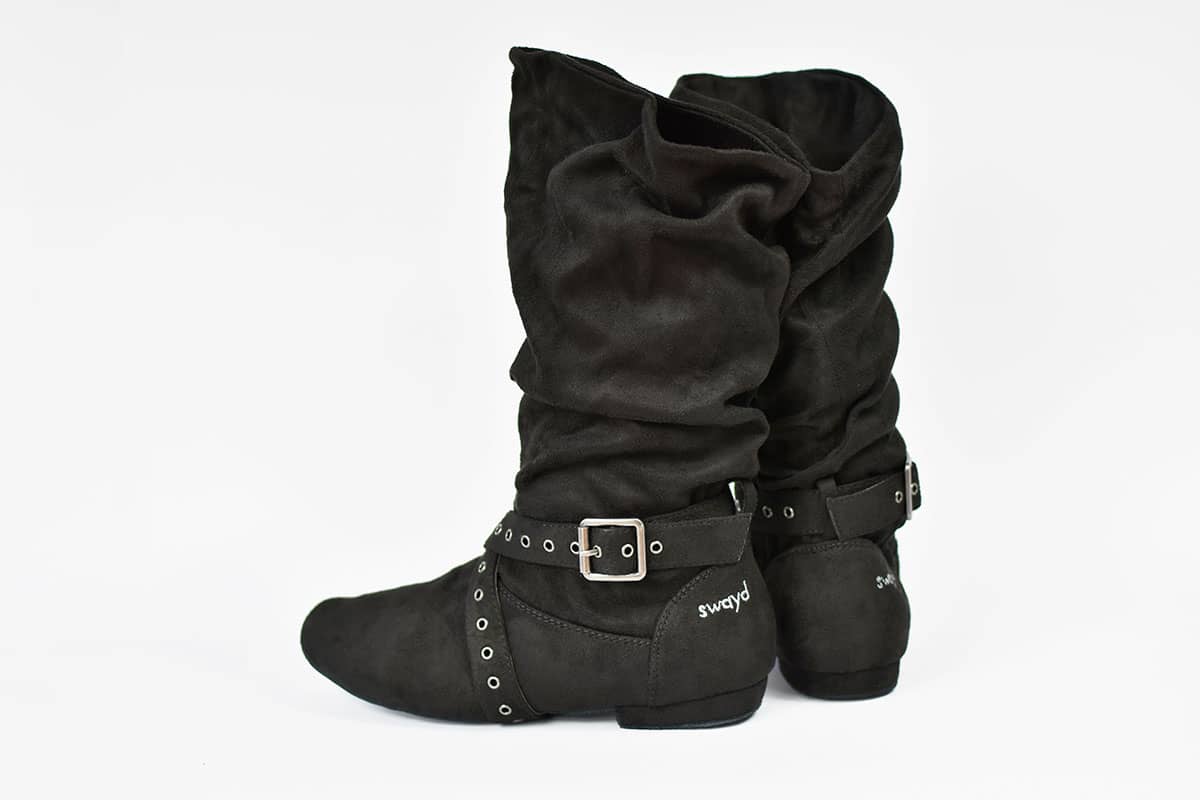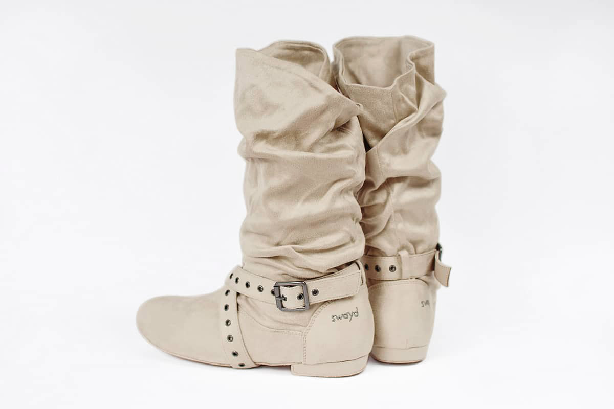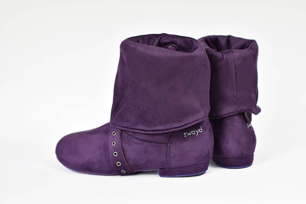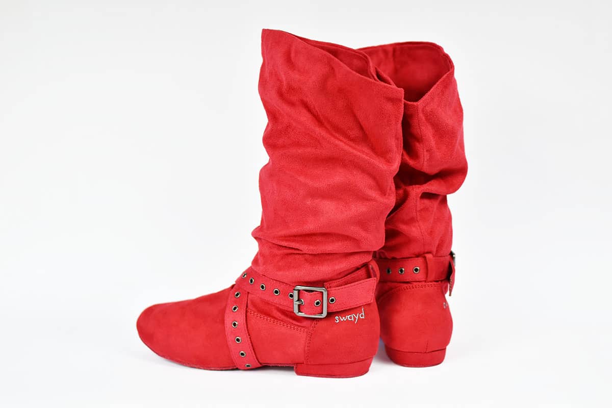 – Indoor dance boots – Low heel (0.5 inch/1.3cm) – Suede outsole – Foldable upper – Available in sizes 33–42, medium and wide width
